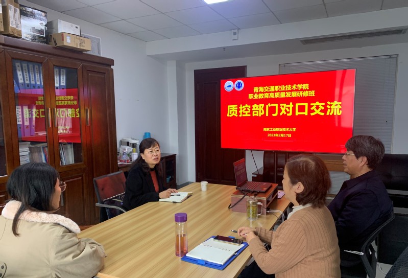 2023年2月下旬至3月初,青海交通职业技术学院职业教育高质量发展研修班在我校举办,该校教育质量监控管理中心沈素军主任和陈雯副主任到我校质控处进行对口交流。质控处周玉泉处长、夏玉敏副处长接待了来宾。