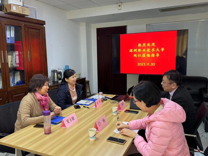 2023年11月30日下午,深圳职业技术大学质量保障中心王耀举副主任一行2人来我校调研交流本科质量保证体系建设有关工作。我校质量监控与评估处处长刘颖、副处长夏玉敏接待了来宾,在行政楼311会议室进行了会谈。